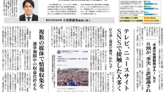 2026.04.052020.10.27新着記事 2026年4月5日NEW! 【公明新聞】選挙の偽・誤情報、接触した8割が「事実」と誤認|SNSとの正しい付き合い方を考える 2026年4月4日NEW! 八王子市看護専門学校の入学式に参加 2026年4月2日NEW! 安保法制施行10年|中東情勢・台湾有事は私たちの生活にどう関係するのか 2026年3月30日 4月から自転車の違反に「青切符」導入!知っておきたいルールと反則金について📝 2026年3月27日 【3月議会・一般質問報告】八王子市DX推進計画|市民が実感できるデジタル化を目指して 2026年3月24日 【公明新聞】「たこかに」で備える事前防災 2026年3月21日 スリーボンドスタジアム八王子スコアボードがお披露目会公明党「公明党」は、<生命・生活・生存>を最大に尊重する人間主義を貫き、人間・人類の幸福追求を目的とする、開かれた国民政党です。東村くにひろ|東京都議会議員(八王子市)公式ホームページ八王子(あなた)の未来のために もっと!もっと!!【実績ダントツNo.1!】東京都議会議員6期連続で務める東村くにひろの公式ホームページです。東村くにひろ事務所:〒192-0051 東京都八王子市元本郷町4-20-25-302 TEL:042-620-4405 FAX:042-620-4402公明党チャンネル公明党の動画配信チャンネルです。 記者会見や街頭演説の模様など、 公明党議員の活動映像を配信します。 【切り抜きやまとめ動画は大歓迎です】 面白い、参考になった。という場合は拡散お願いします。 ただし、下記の点のみ厳守いただけますと幸いです。 ・意図的な内容改変はしない ・事実に基づいた情報発信 ・人格を傷つける表現...公明党のサブチャンネル公明党のYouTubeサブチャンネルです! 普段のニュースではなかなか触れられない政策決定の裏側や、公明党所属議員たちの意外な一面など、これまで十分にお伝えできていなかった党の姿を、赤裸々に発信していきます! 【切り抜きやまとめ動画、大歓迎です!】 面白い、参考になった!という場合は、どんどん拡散してください! ただ...