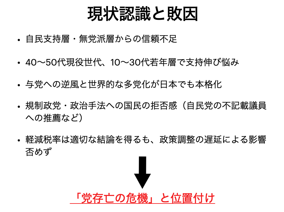 これはあくまでも、総括としての報告であり、従来の延長線上にある単なる改革ではいけないという思いは私自身も感じます。党として具体的に何をどうするのかは、しっかりと議論を行なっていく必要があると思っています。