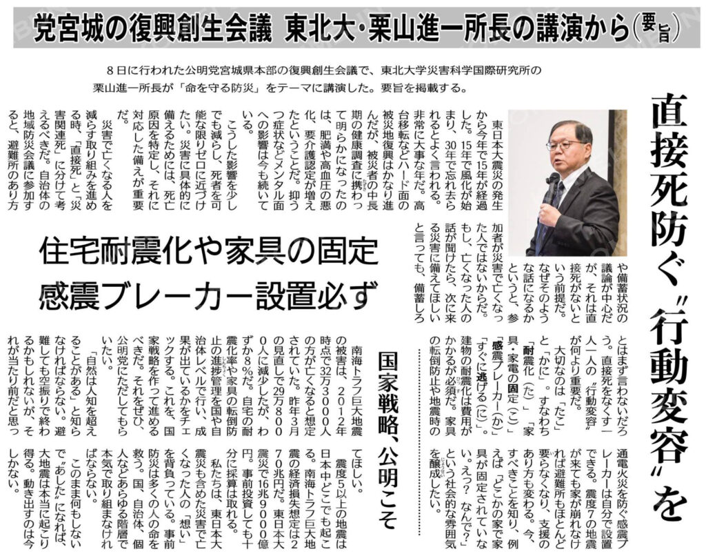 防災の議論では、避難所の整備や備蓄の話になりがちです。しかし栗山所長は「それは直接死がないという前提に立った議論だ」と強調します。